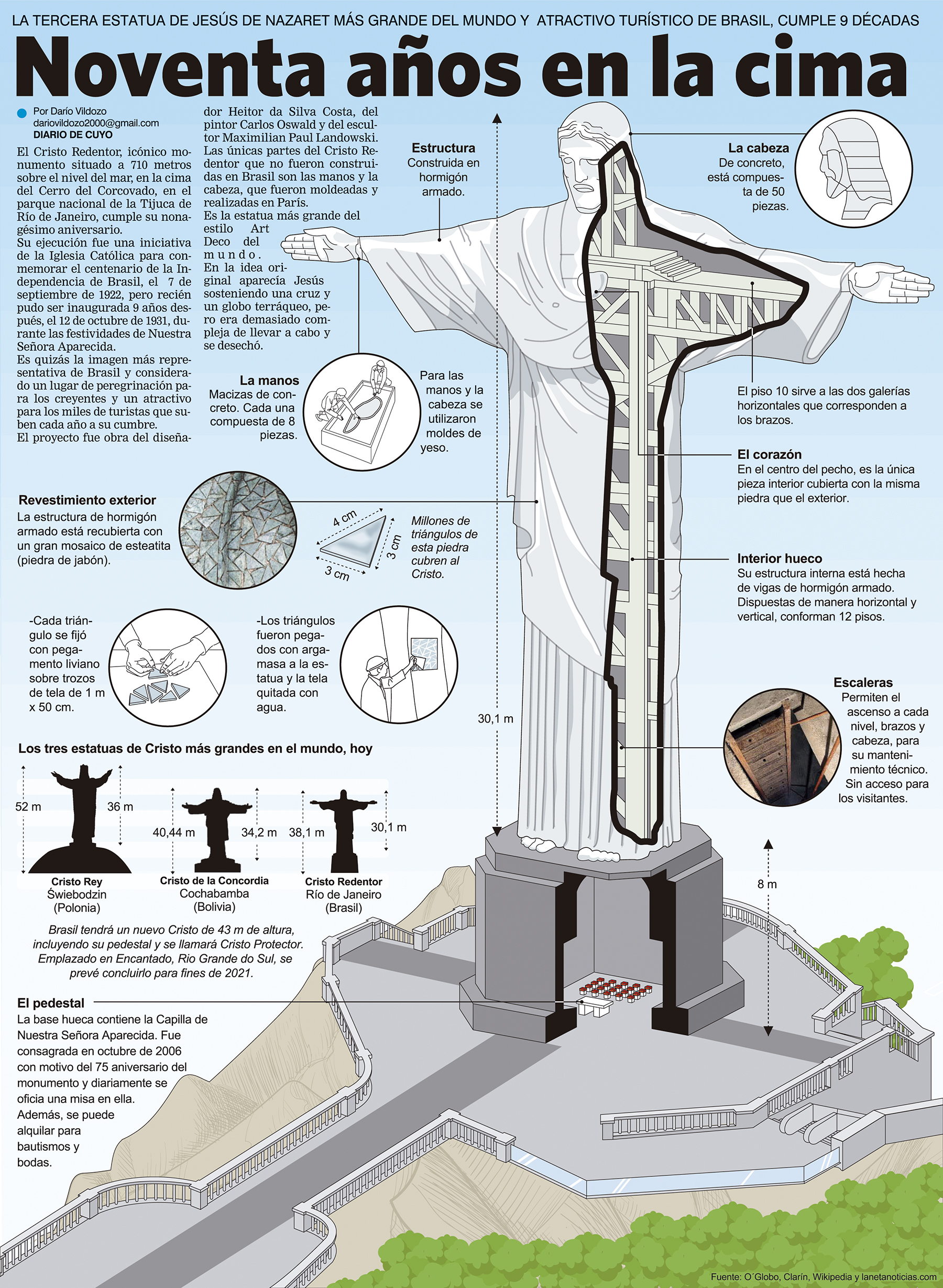 La tercera estatua de Jesús de Nazaret más grande del mundo y atractivo turístico de Brasil, cumple 9 décadas.