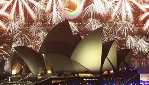 En la ciudad de Auckland, la mayor de Nueva Zelanda, tuvo lugar con motivo del Año Nuevo un espectáculo de fuegos artificiales de cinco minutos de duración. Los festejos arrancaron el trote de este a oeste por mediode los husos horarios hasta llegar a Alaska y algunas islas del Pacífico.