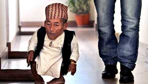 El nepalí es además el individuo más pequeño jamás registrado por el Guinness: antes, la marca estaba en manos del indio Gul Mohammed, que medía 57,5 cm y que murió en el año 1997.
