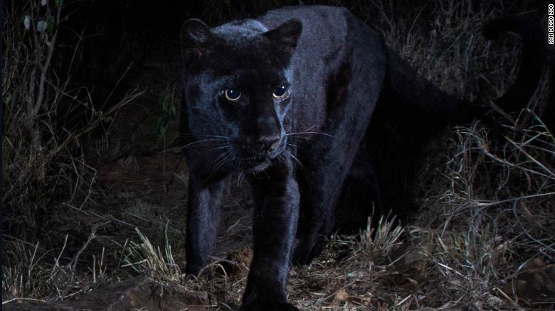 La tonalidad negra del animal se debe a una variante genética, que es todo lo opuesto al albinismo, por lo que le da un exceso de pigmentación oscura. Según el Daily Mail, la última vez que se fotografió un leopardo negro en África fue en 1909 en Etiopía. La imagen está guardada en el Museo Nacional de Historia Natural en Washington DC.