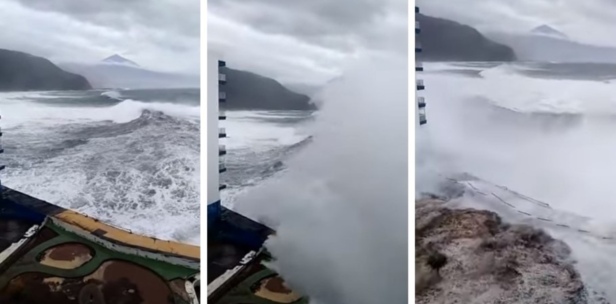 Un fuerte temporal afecta a las Islas Canarias, en España, con olas de hasta 6 metros de altura, que incluso llegaron a arrancar varios balcones de viviendas en el norte de la isla de Tenerife.