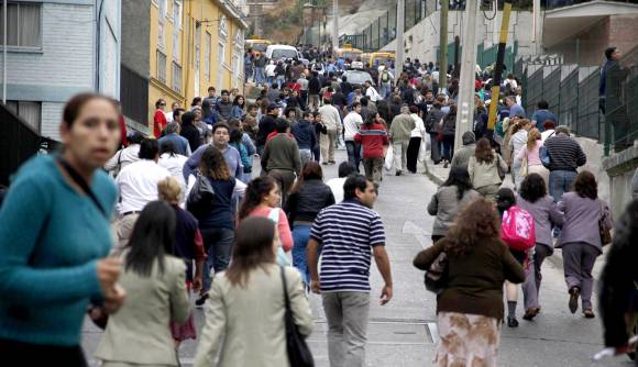 En Santiago, las personas que trabajan en edificios institucionales y otros particulares corrieron a los espacios abiertos. Las aceras y jardines centrales de la Alameda Bernardo O’Higgins, la principal avenida de la capital chilena se encontraban atestadas de personas y pudo observarse como muchas mujeres se encontraba con ataques de histeria y otras desmayadas.
