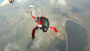 Afortunadamente uno de ellos pudo alcanzar a Eugine y estabilizarlo para que dejara de girar, previo a abrir su paracaídas.