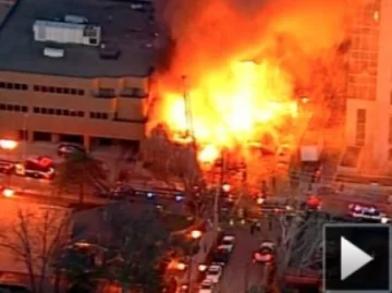 Estados Unidos, 20 de febrero.- Un incendio, al parecer ocasionado por acumulación de gas en una oficina de un centro comercial de Kansas City, consume en su totalidad una zona de entretenimiento y comercio conocido como Country Club Plaza.