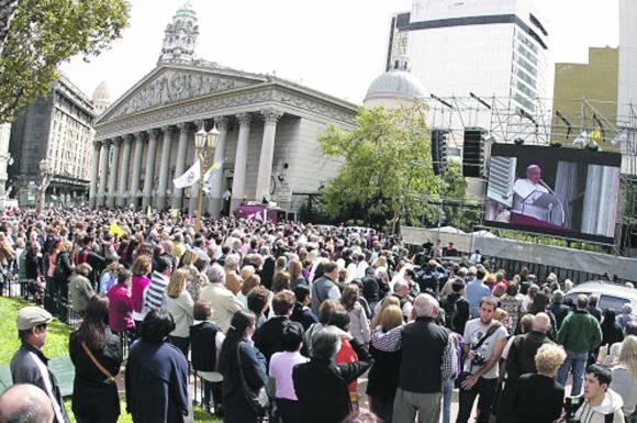 Una multitud de católicos argentinos respondió ayer al llamado del papa Francisco y rezó por él en la catedral de Buenos Aires y en iglesias de todo el país, en la primera de las tres jornadas de oración convocadas por la Iglesia argentina para celebrar su nombramiento.
