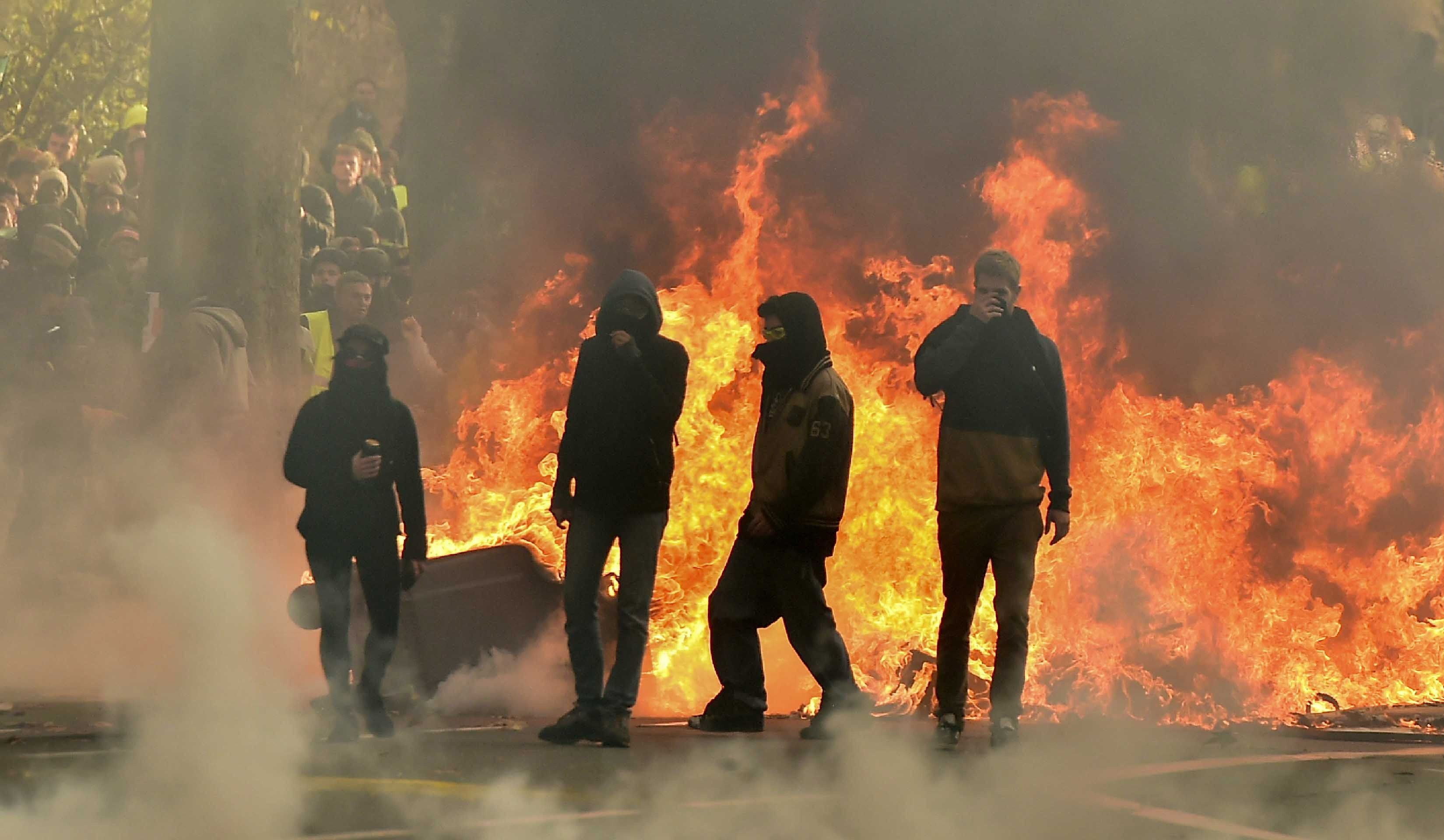 Además de Francia, las protestas se extendieron en Bélgica y Holanda. La detención de casi 1.400 personas en Francia (de ellas más de 900 en París) y la estrategia de un dispositivo policial de excepción permitieron ayer limitar la dimensión de los disturbios. Las convocatorias reunieron a 125.000 personas en todo el país y 10.000 en la capital.