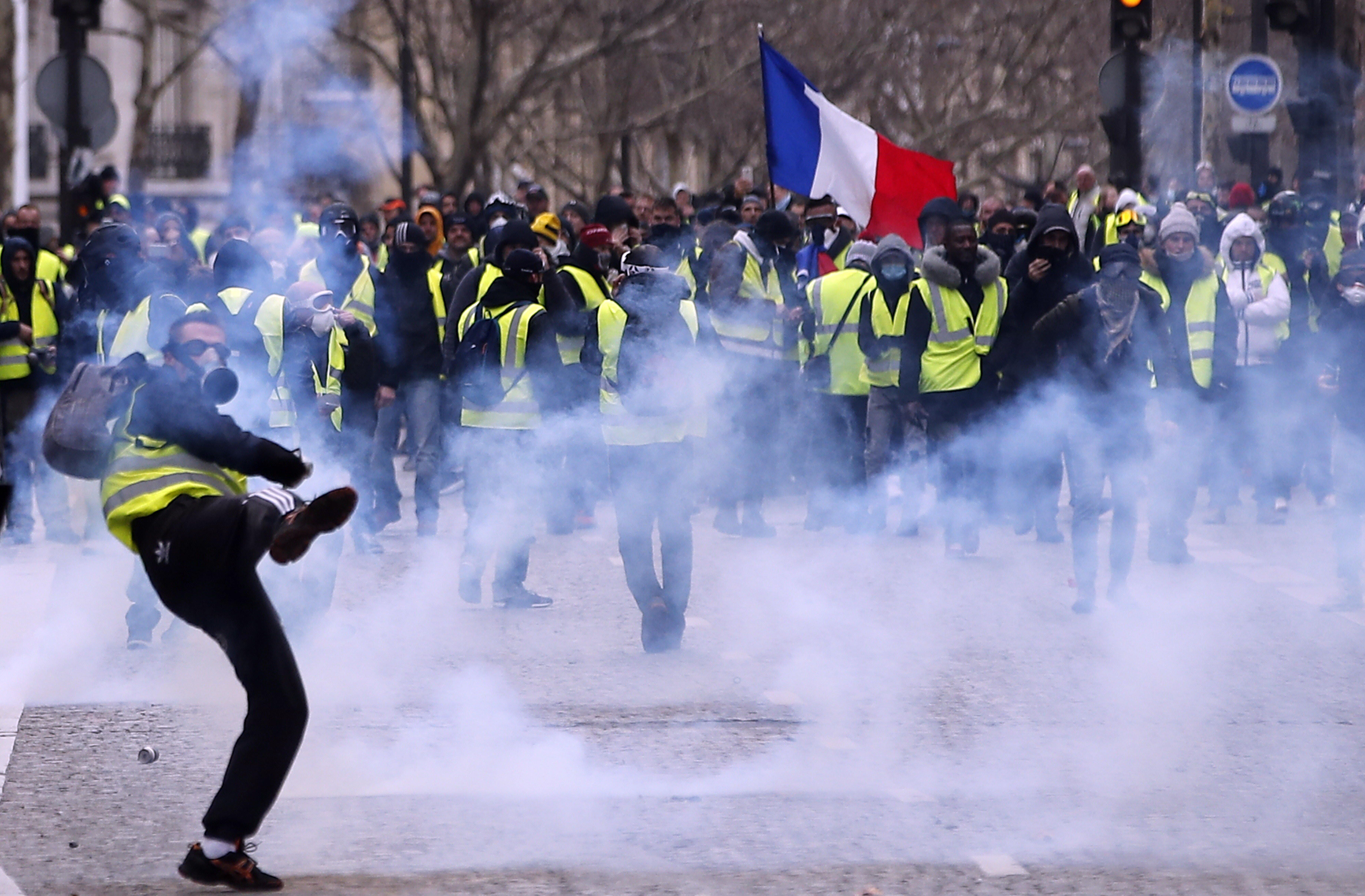 Los primeros choques entre fuerzas del orden y manifestantes, con lanzamientos de gases lacrimógenos, se produjeron ya a primera hora de la mañana en la avenida de los Campos Elíseos.