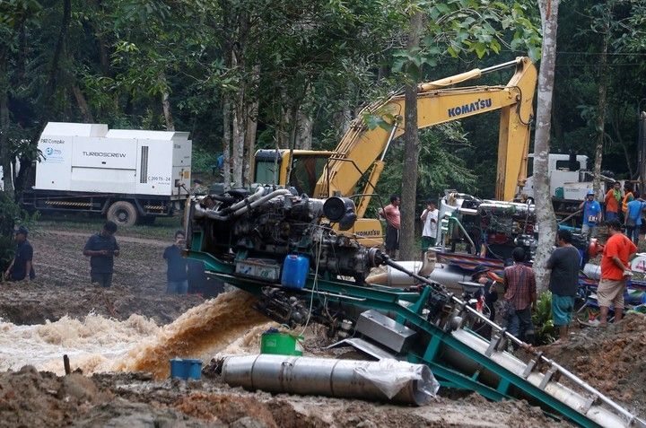 En Tailandia es época de lluvias y las precipitaciones dificultaron por varios días las labores de rescate. La unidad de la marina que ayuda en el salvamento señaló en Facebook que si baja el nivel de agua, los buzos están preparados para volver al lugar.