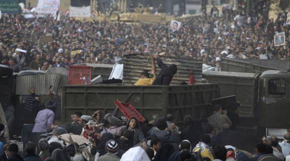 El ataque provocó caóticas escenas en la plaza Tahrir (Liberación), epicentro de todas las protestas, donde algunos manifestantes pasaban montados en caballos, camellos y en carruajes, blandiendo látigos y palos.