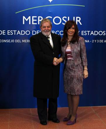 Lula que había recibido de manos de Cristina Fernández la Presidencia pro témpore del Mercosur escuchó a sus pares vía auriculares por los que salía la voz de su traductor. Mientras, él repasaba las páginas del discurso que daría después. Sin embargo, a su turno, improvisó la mayor parte del tiempo.