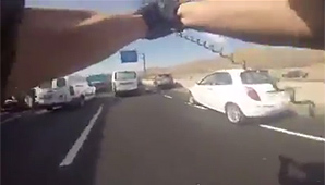 En el video se ve como un Carabinero, con una cámara en la cabeza, va sobre su motocicleta en su persecución de un auto, pidiéndole posteriormente al conductor que se baje, cosa que el supuesto delincuente se niega a hacer y emprende su marcha, mientras el policía va disparando y corriendo a gran velocidad.