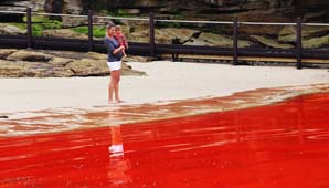 Australia, 28 de noviembre.- A pesar del calor que golpea a Australia por estos días, las autoridades decidieron cerrar algunas playas debido a una excesiva proliferación de algas que ha teñido la costa de color rojo intenso.