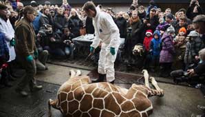 Dinamarca, 9 de febrero.- Alegando que era necesario para evitar la consanguinidad, el zoológico de Copenhague sacrificó el domingo a una jirafa sana y dio sus restos a los leones ante la mirada de los visitantes, ignorando ofertas de dinero, firmas de miles de personas y ofertas de otros zoológicos para salvar al macho de dos años.