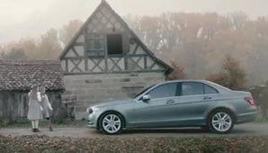 El vehículo huye entonces del pueblo -en ese momento se ve su nombre en un cartel a la entrada: el austríaco Braunau am Inn-, la pantalla funde a negro y, con el tipo de letra que usa Mercedes-Benz para su publicidad aparece el eslogan: "Reconoce los peligros antes de que aparezcan".