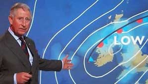 Escocia, 10 de mayo.- "Ahora echemos un vistazo a la previsión del tiempo. Es un placer anunciar que tenemos un nuevo miembro en nuestro equipo de meteorología. Déjenme que les presente. Su alteza…". Así introdujo una presentadora de la señal al príncipe de Gales, quien visitó el edificio en Glasgow con motivo del 60º aniversario del nacimiento de la BBC en Escocia.