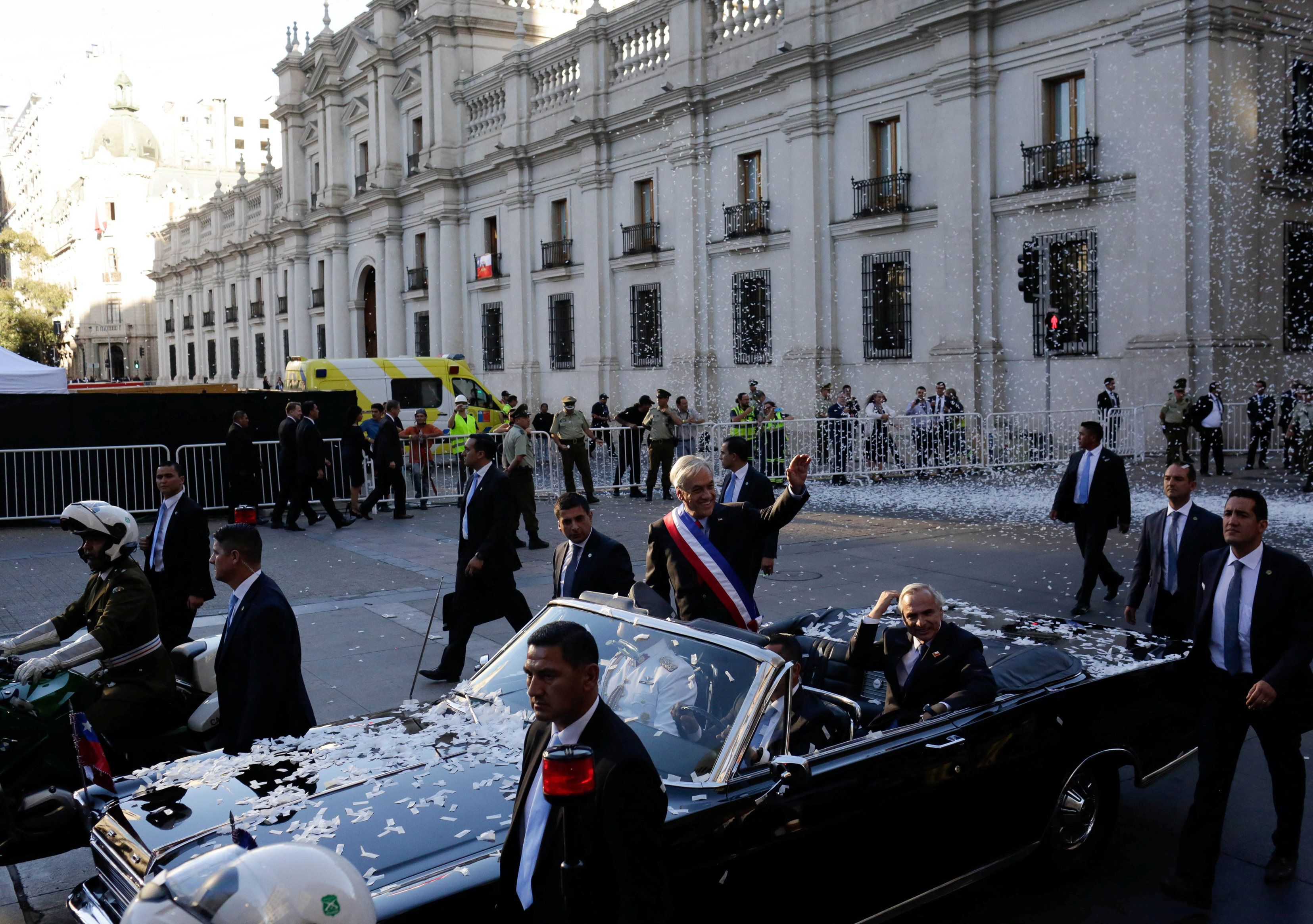La Moneda. El presidente Piñera, llegando al Palacio de la Moneda, la sede del Gobierno nacional.
