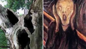 Por ejemplo, el “árbol gritando”, es un roble de 400 años similar a la pintura “El Grito”. Su tronco se asemeja a una cara monstruosa. Parece que tuviera ojos, nariz y hasta dientes. Dicen que este árbol es el más temible del país y se ubica en la localidad de Coggeshall, Essex, Inglaterra.