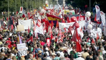 Decenas de miles de personas participaron ayer en Madrid en una concentración convocada por la Cumbre Social, que integra a 150 organizaciones sociales y a los principales sindicatos españoles, para exigir al Gobierno conservador de Mariano Rajoy que convoque un referéndum sobre su política de recortes.