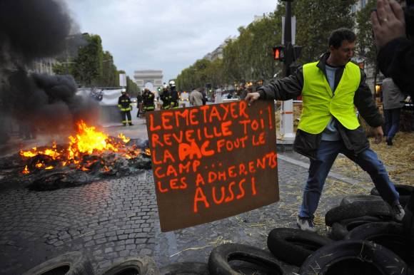 Miles de agricultores manifestaron ayer en toda Francia en reclamo de ayuda por la crisis, generando perturbaciones en las principales ciudades, inclusive en Paris por un piquete con quema de neumaticos en la celebre avenida de Champs-Elysées. Participaron más de 50.000 productores lácteos, de frutas, cereales, vinicultores, de carne bovina y porcina.