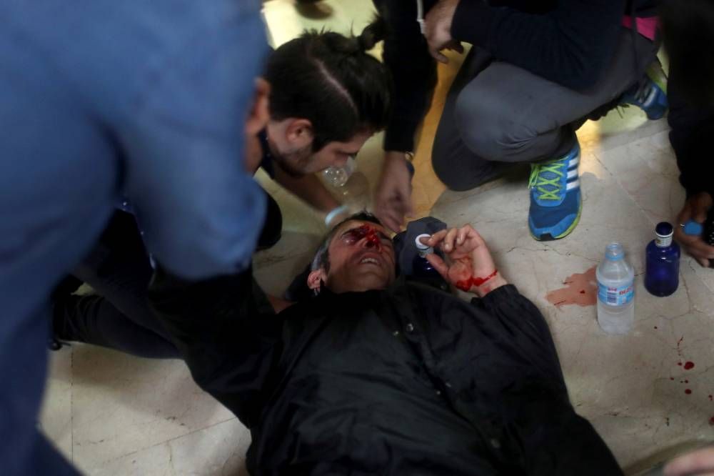 Las cargas policiales y otros incidentes provocaron heridos de diversa consideración, uno de ellos por un balazo de goma en un ojo en las puertas de uno de los centros de votación de Barcelona, quien se encuentra internado en grave estado en el hospital Sant Pau de la ciudad.