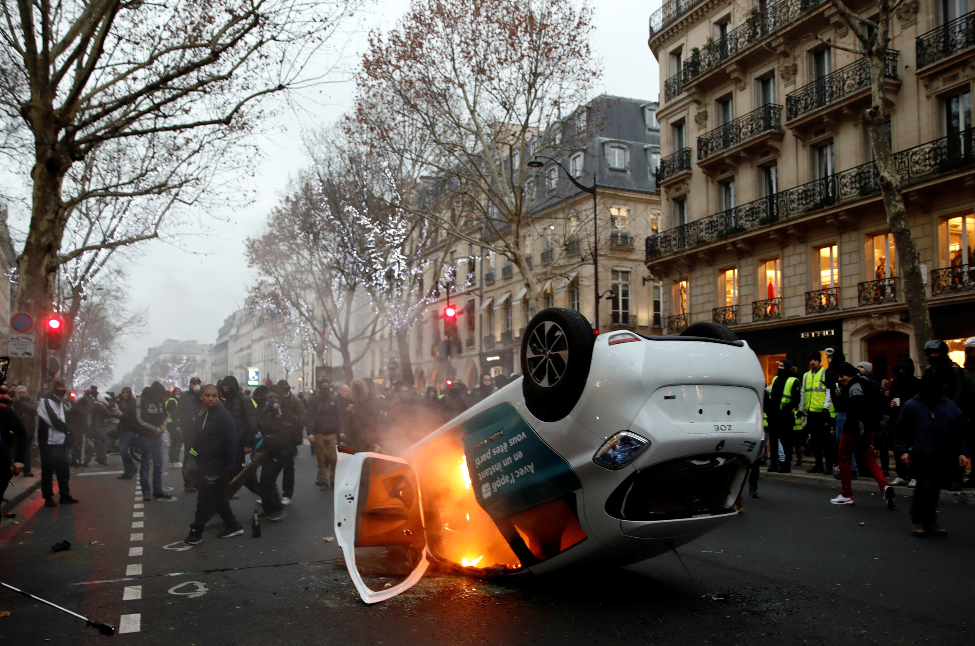 Un blanco preferido. Desde el comienzo de la protesta de los "chalecos amarillos", los autos y motos policiales fueron una tentación para el apetito de destrucción de las protestas.