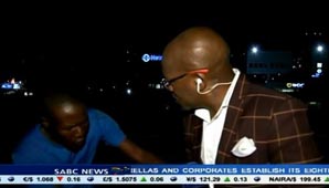 Con total impunidad y a rostro descubierto, dos malvivientes se acercaron a un periodista y lo asaltaron. El hecho fue registrado por las cámaras de la televisión nacional de Sudáfrica, segundos antes de que saliera al aire.