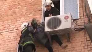 Los vecinos informaron al servicio de socorro local sobre el acontecimiento, que se produjo en el cuarto piso del edificio. Los rescatistas tardaron unos minutos para llegar con escaleras y cuerdas.