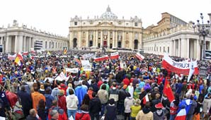 Un cielo gris sobre Roma no impidió sin embargo que unos 800.000 fieles y curiosos se acercaran a una plaza San Pedro que pronto quedó colmada, y a las calles adyacentes. Hubo incluso centenares de personasque pasaron la noche en las inmediaciones de la Santa Sede hasta el momento en que se abrieron los accesos para ingresar a la ceremonia.