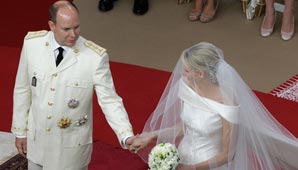 Mónaco, 2 de julio.- El príncipe Alberto de Mónaco y la sudafricana Charlene Wittstock se casaron este mediodía por Iglesia, en una glamorosa ceremonia efectuada en el patio del palacio monegasco ante cientos de líderes mundiales, miembros de la realeza y celebridades. Ayer habían contraído matrimonio por civil.