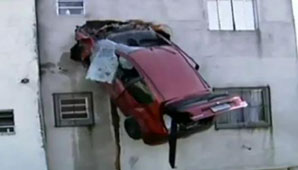 Brasil, 18 de abril.- Un conductor perdió ayer el control de su vehículo, "voló" varios metros y se incrustó en el segundo piso de una casa, en San Pablo, Brasil.