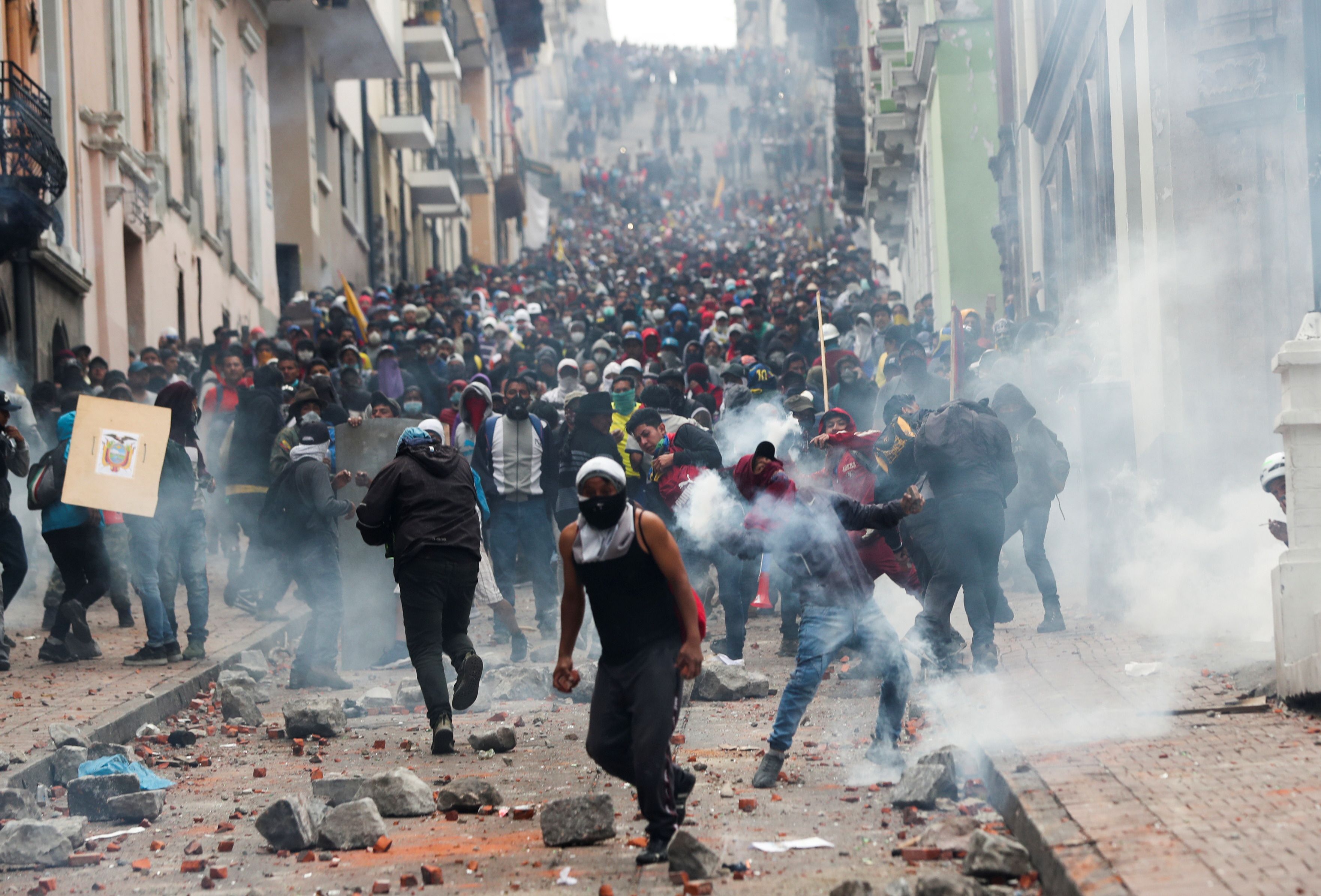 En medio de la vuelta del presidente Lenin Moreno a la capital y una nube espesa de gases lacrimógenos que inunda las angostas calles que rodean el centro histórico, decenas de miles de indígenas, trabajadores y estudiantes ecuatorianos profundizaron ayer sus protestas y marcharon hasta las cercanías del militarizado Palacio de la Presidencia.