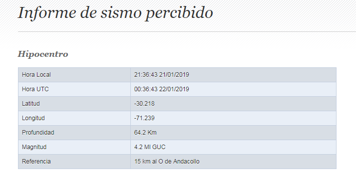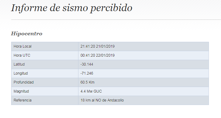Mientras que el segundo de ellos se registró a las 21.41, con una magnitud de 4,7 grados y epicentro a 26 kilómetros hacia el Noroeste de Tongoy, con una profundidad de 54 kilómetros.