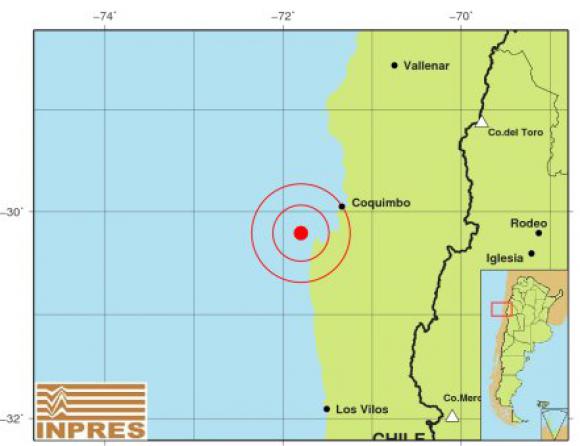 El episodio ocurrió a 346 km al NO de San Juan, 407 km al NO de Mendoza, 53 km al SO de Coquimbo, precisaron.