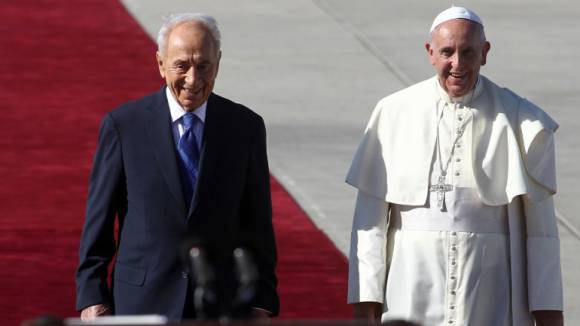 Buenos Aires, 26 de mayo.- La histórica visita del papa Francisco a Tierra Santa incluyó en el último día de actividades oficiales un encuentro con el presidente de Israel, Shimon Peres, en Jerusalén. El líder local agradeció las gestiones iniciadas por el Pontífice que incluirán una reunión en el Vaticano con autoridades de Palestina. El Santo Padre replicó: "Que Jerusalem se transforme verdaderamente en la ciudad de la paz".