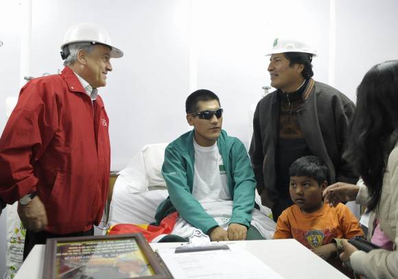 Morales llegó ayer por la mañana a la ciudad de Copiapó, a 800 kilómetros al Norte de Santiago, y se trasladó hasta la mina San José para visitar a Mamani, quien desde su rescate, en la madrugada de ayer, pasó al hospital de campaña.