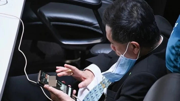 Según trascendió, el político estuvo viendo imágenes eróticas y explícitas que incluían una mujer en toples y un primer plano de los genitales femeninos durante unos diez minutos. Se trata del parlamentario tailandés Ronnathep Anuwat, quien incluso se quitó el tapabocas para ver las fotografías más de cerca.