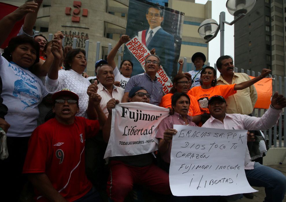 Tras el anuncio de su indulto, sus simpatizantes se acercaron al centro médico con carteles para celebrar. El congresista Kenji Fujimori, el hijo menor del exgobernante que fue decisivo para que se archivara en el Congreso un pedido de vacancia (destitución) de Kuczynski, informó que su papá “continuará en la unidad de cuidados intensivos hasta su total recuperación”. Su hermana Keiko Fujimori, líder del partido Fuerza Popular, también llegó a visitar a su padre y expresó su satisfacción por el indulto.