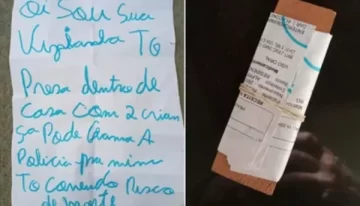 “Hola, soy tu vecina. Estoy encerrada con dos niños. ¿Podés llamar a la policía por mí? Corro riesgo de muerte”, escribió la mujer en el papel atado con una goma elástica a un pedazo de madera que arrojó al patio de la vecina. Mientras que del otro lado, escribió “SOS” en letras capitales.