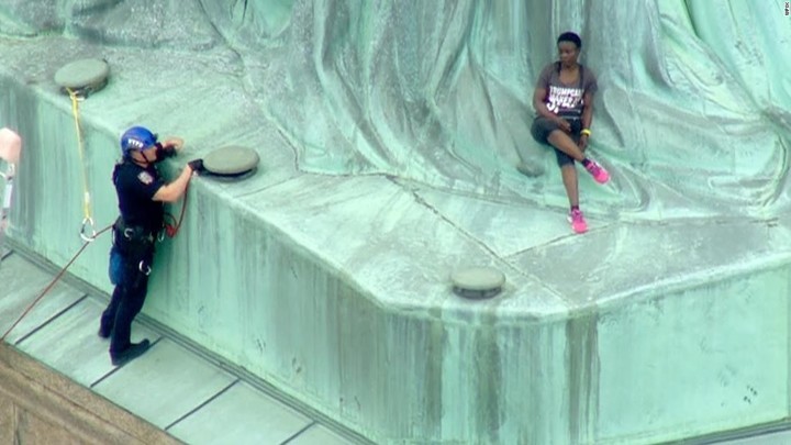 Una insólita situación tuvo lugar este miércoles en Nueva York. Una mujer escaló la base de la Estatua de la Libertad para protestar contra las políticas migratorias del gobierno de Donald Trump.