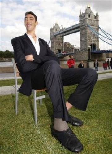 Se llama Sultán Kosen, es turco, mide 2,47 metros y desde ayer es oficialmente el hombre más alto del mundo, tras haber sido coronado como tal durante la presentación en Londres del Libro Guinness de los Récords 2010. Fue jugador de baloncesto profesional hasta que una lesión de espalda lo obligó a retirarse. Sus manos y pies miden 27,5 y 36,5 centímetros respectivamente.