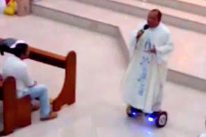 Una diócesis católica en Filipinas suspendió a un cura por recibir a sus feligreses en una patineta eléctrica, conocida como hoverboard, durante la misa de Noche Buena. El sacerdote, de la diócesis de San Pablo en Laguna, fue filmado yendo de arriba a bajo del templo montado en la patineta, lo que provocó los aplausos de algunos de los asistentes.