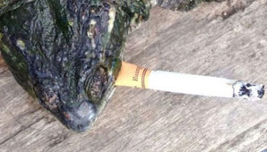 El extraño caso de esta tortuga ocurrió en una localidad de China. Por alguna razón sus dueños comenzaron a darle cigarrillos a su mascota y ahora el animal sufre de una seria adicción a la nicotina.
