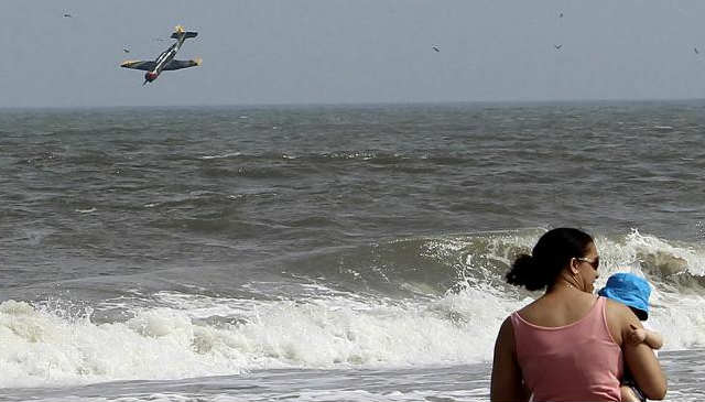 La imagen tomada por Whitney Rufo, para AP, muestra el momento exacto en el que el avión cae, frente a la vista de algunos bañistas.