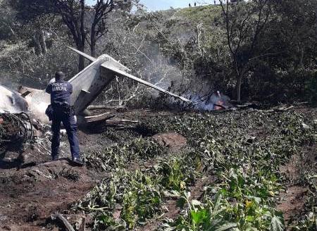 Según fuentes policiales, la aeronave tipo Learjet fue consumida por el fuego y sus siete tripulantes murieron en el lugar de los hechos.