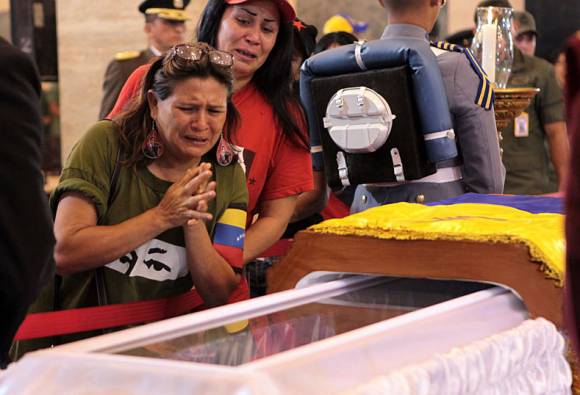 Tras comentar que son ‘escasos los segundos permitidos para estar ante el ataúd donde yace el cuerpo de quien fuera el hombre que transformó a Venezuela’, Isabel Sánchez ,de la agencia de noticias AFP, comentó que ‘una bandera venezolana cubre la caja de madera flanqueada por una guardia de honor del Ejército, la Armada, la Aviación y la Guardia Nacional. A la cabeza una gran cruz dorada. A sus pies una espada de oro, símbolo del Libertador Simón Bolívar. Una vela, a un costado, no para de titilar’.