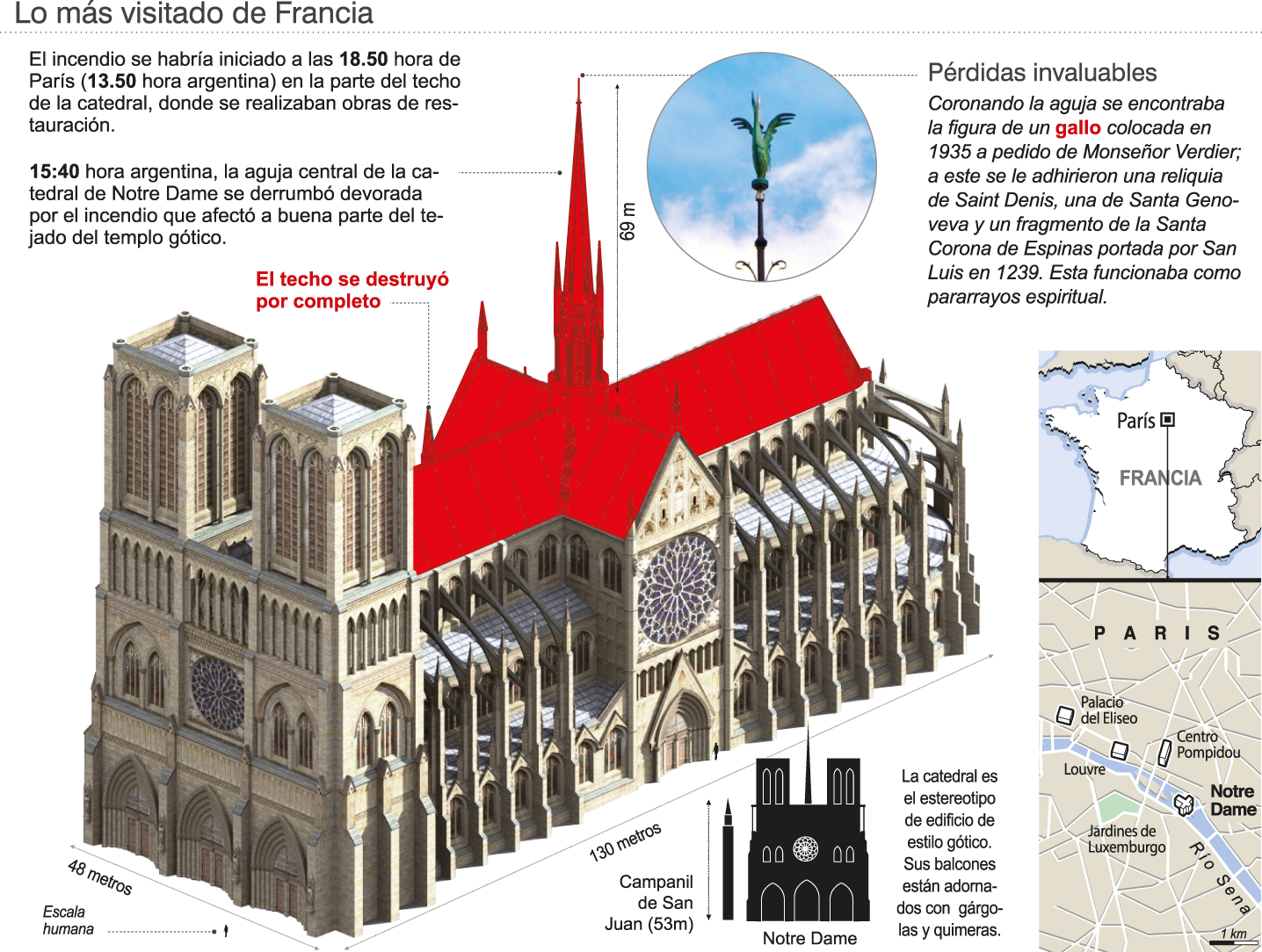 "No es la primera vez que se destruye Notre Dame. Su reconstrucción en el siglo XIX impuso el estilo neogótico. Hasta ahora nada indica un atentado, aunque cerca de 10 iglesias fueron atacadas recientemente.