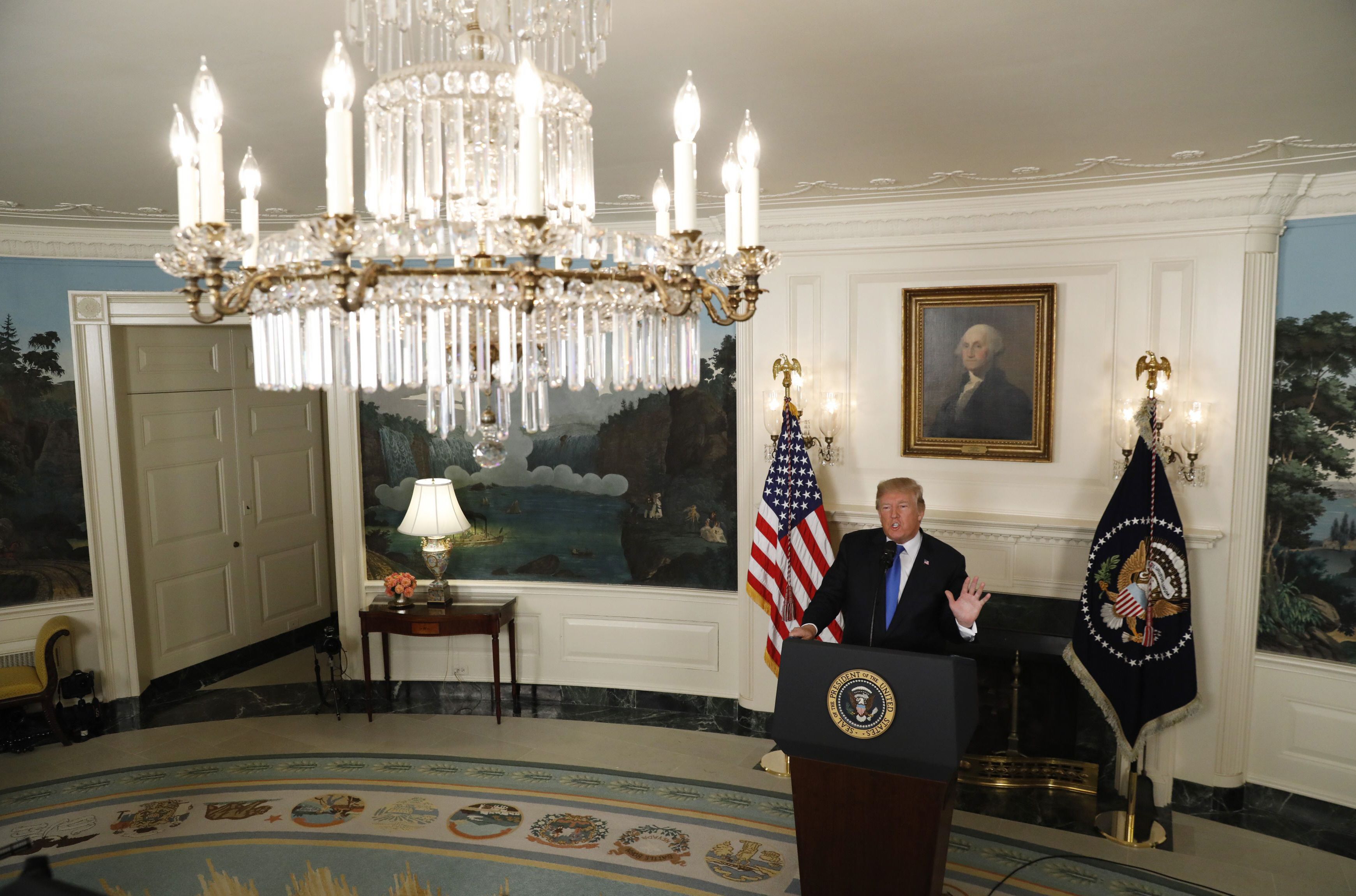 Barajar y dar de nuevo. Donald Trump anuncia en la Casa Blanca el cepo al pacto nuclear con Irán que en 2015 firmó su antecesor, Barack Obama, con el régimen de Teherán y las principales potencial mundiales.