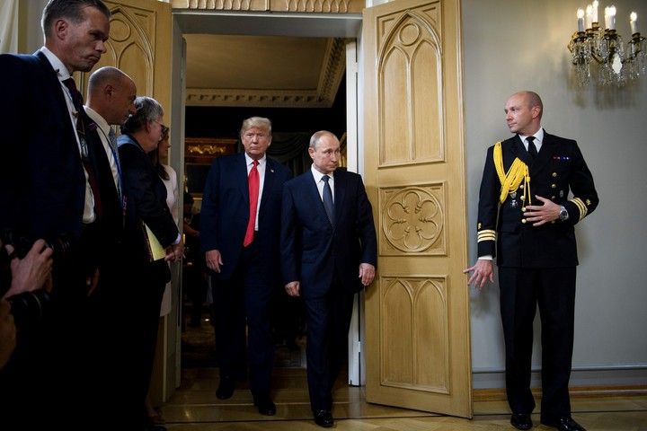 Los presidentes de Estados Unidos, Donald Trump, y de Rusia, Vladimir Putin, se reunieron en el Palacio Presidencial de Helsinki, en su primera cumbre formal, durante dos horas. Según se esperaba, hablarían sobre los conflictos en Siria y Ucrania, el desarme nuclear y la presunta injerencia electoral de Moscú.