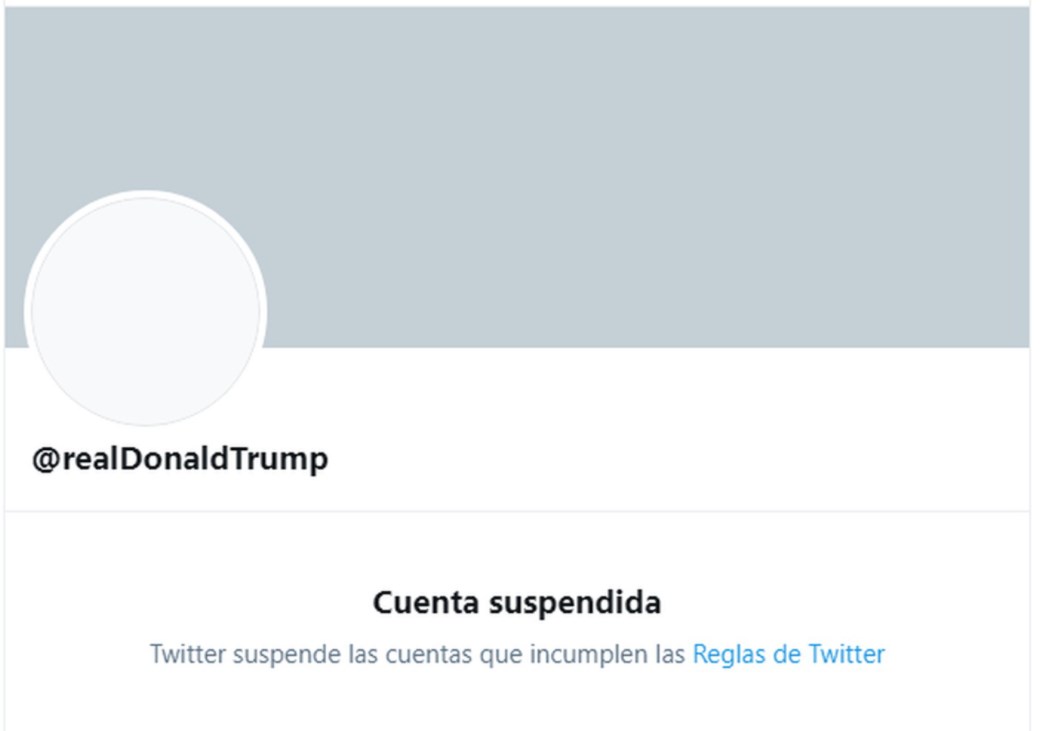 Trump utilizó Twitter de forma exitosa durante la campaña que lo llevó a ocupar la presidencia y lo siguió utilizando como principal canal de comunicación ya en el cargo. Ahora, en su lugar, aparece un vacío con la leyenda: “Cuenta suspendida”. Esta es la primera vez que la compañía toma una determinación con una figura pública del tamaño del estadounidense.