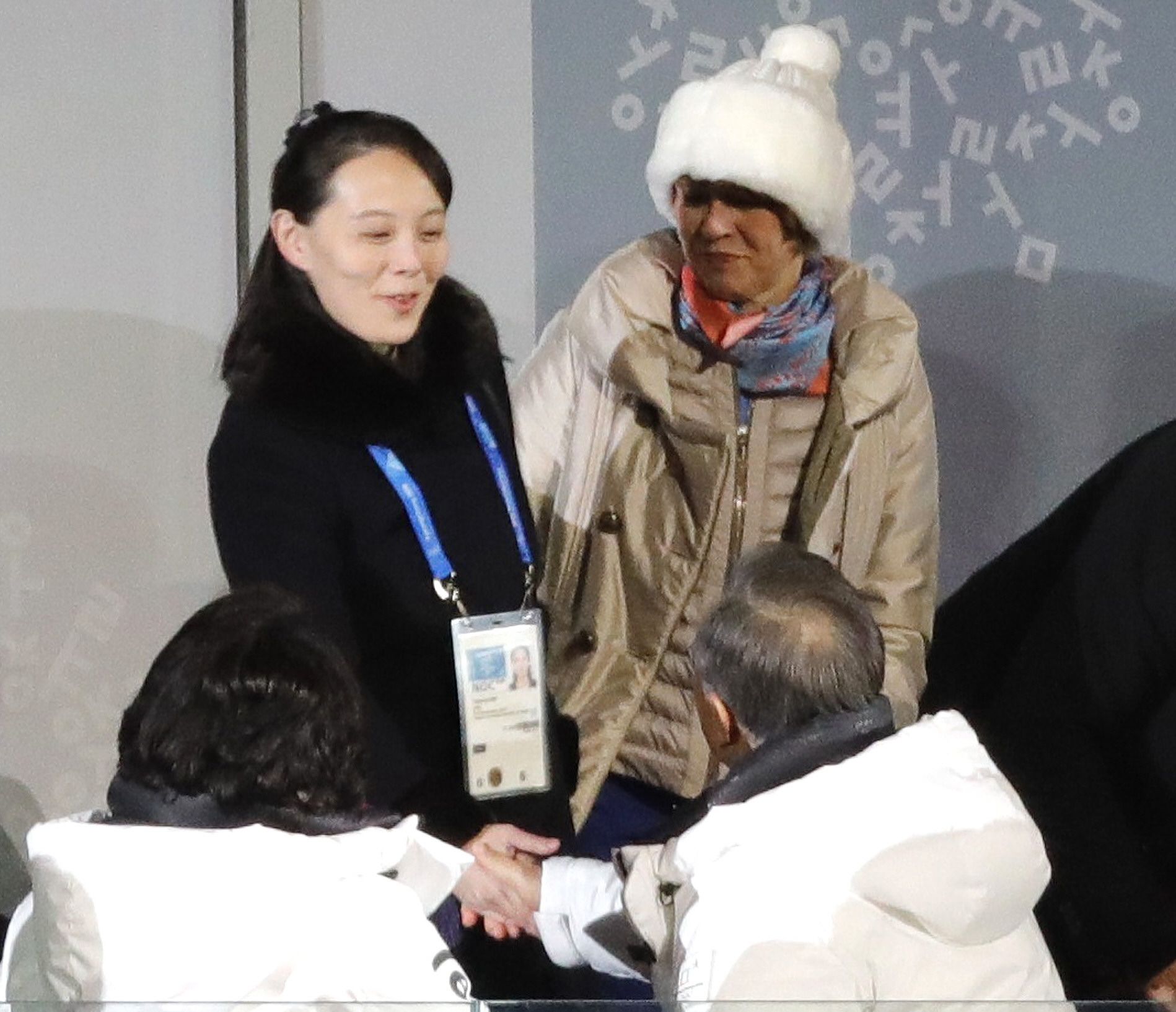 En un momento impensado apenas días atrás, la hermana del líder de Corea del Norte, Kim Jong-un, estrechó su mano con el presidente surcoreano, Moon Jae-in, mientras ambos miraban desde el palco principal un elaborado espectáculo de luces, sonido y actuaciones artísticas y deportivas en el estadio.